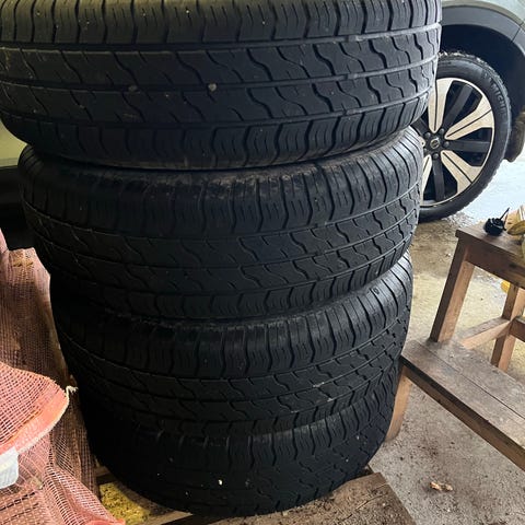 Gamle felger med dekk til VW boble opp til 66 modell. 7 stk er type pigg.