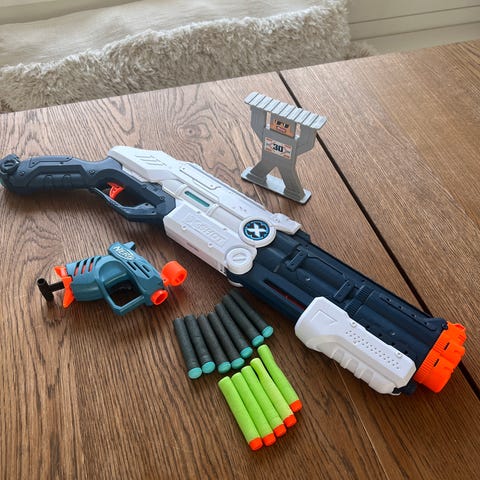 Nerf Shot pistol + Nerf Elite + Nerf Falconfire + liten Nerf pistol + piller