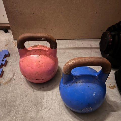 48 kg Sportsmaster Competition kettlebell. Competition Kettlebells er kettlebells i stål hvor hver kettlebell har samme størrelse uansett om de veier 4 kg eller 48 kg. Det er vanligvis denne typen kettlebells som brukes i konkurranser, men de er også blitt populære på treningssentere og i trimrommet hjemme. Pro kettlebells er godkjente av IKFF (International Kettlebell and Fitness Federation). Pakket i eske med isopor - enkel å sende.