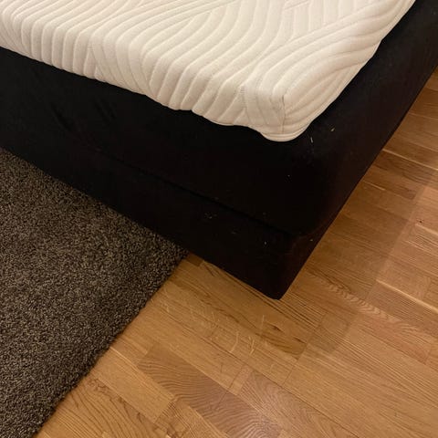 Kjøpt på Jysk i juni 2023 og selges pga flytting. Den er fint brukt og har snudd på madrassen en gang i blant. Ingen bruksmerker eller lignende. Overmadrass følger med.