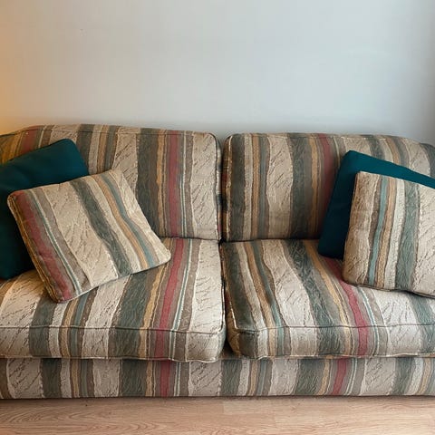 Sofa, stuebord, sidebord, to lenestoler GIS BORT