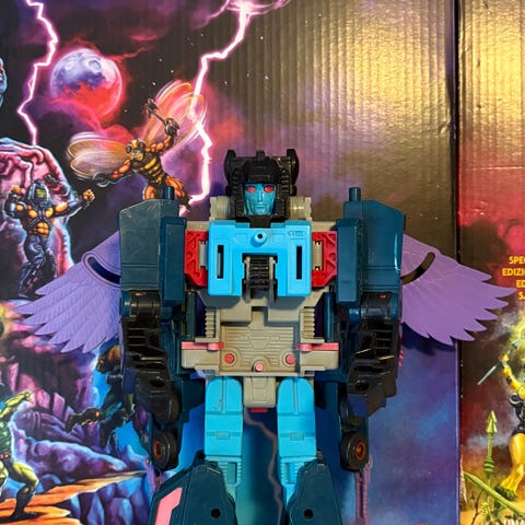 Disse to er virkelig en center-piece av en samling for en hver mecha eller Transformers fan. Særlig hvis de stilles mot den onde keiseren Deathsaurus, som jeg også selger. Gir rabatt hvis alle tre kjøpes samme, så bare send melding! :)