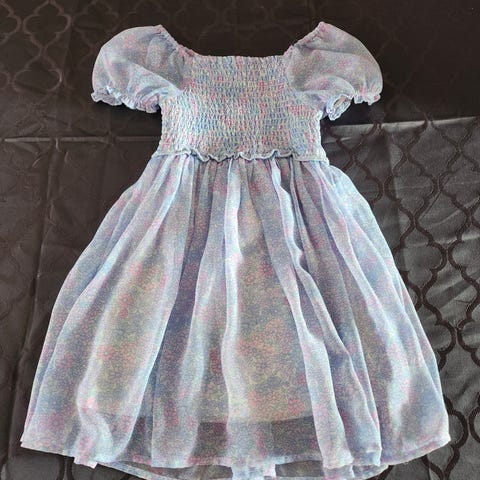 Name it kjole for jente i størrelse 104. Kjolen er laget av bomull og har flerfarget mønster med striper og figurtrykk. Langermet modell med rund hals og lett utsvingt skjørt. Passer til hverdagsbruk og barnehage.