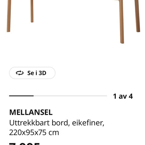 Bordet er ellers helt og i svært god stand uten synlig bruksslitasje. Bordet er uttrekkbart og kan kjøpes ekstra plater på IKEA.