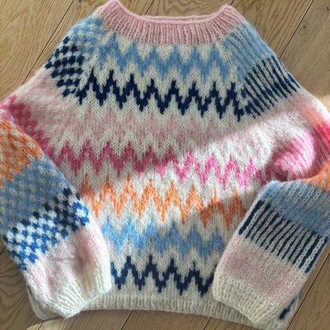 Zara genser for dame i størrelse S. Genseren er flerfarget med mønster i flere farger og ribbestrikkede kanter i hals, ermer og nederkant. Materiale i bomull. Passer til hverdagsbruk og kan kombineres med ulike underdeler som jeans, skjørt eller bukser.