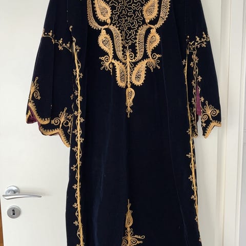 Tunikaen er mørkeblå med dekorative mønster I halshåpningen og ermene. Den kan brukes i herkamp og er solid. Størrelse Xl til herre.