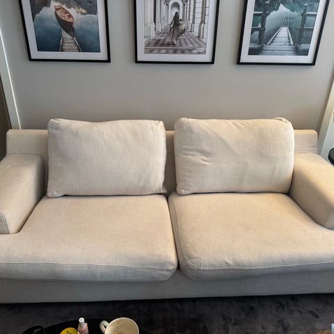 Veldig behagelig sofa, som trenger å bli omtrukket!