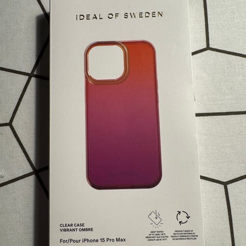 iDeal of Sweden Vegan Leather Case telefondeksel til iPhone 15 Pro Max. Dekslet ble kjøpt til feil telefon modell, det er ingenting galt med det da det er helt nytt og i pakken enda. Ny koster den 449kr.