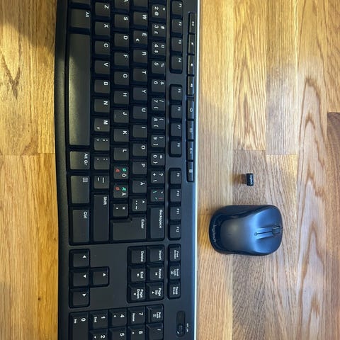 Pent brukt mus og tastaturet, mus kobles til pcen og tastaturet brukes batterier