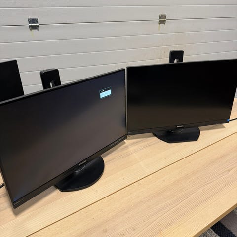 Den ene skjermen bruker av og til et minutt på å varme opp, og i mellomtiden kan bildet være utydelig.