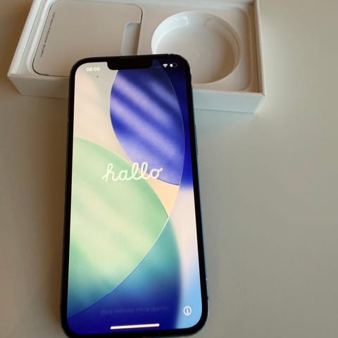 Nesten strøken iPhone 13 med originalemballasje, følger med 2 deksler.