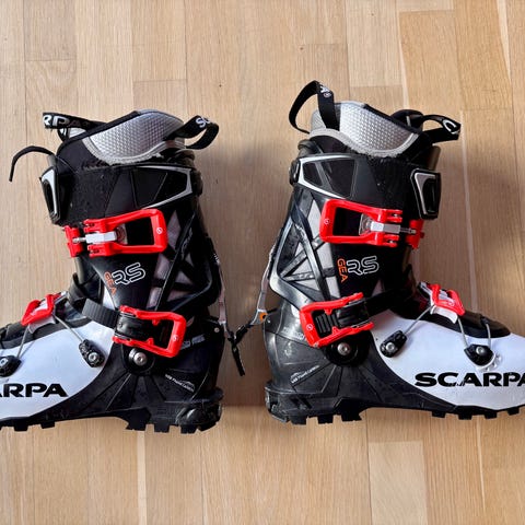 Passer til bruk i alpinbakke og på topptur, avhengig av bindinger og ski de kombineres med. Selges pga, feil størrelse. Kun brukt et par ganger.