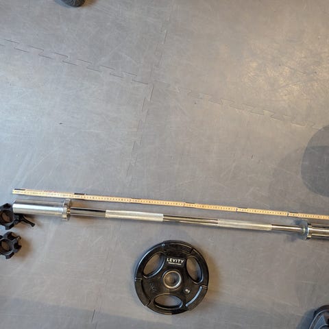 Pent og lite brukt vektstang med vektskiver fra abilica. Vektskivene er på 2,5kg og 5kg. Totalvekt ca 20kg. Vektstang er ca 130cm lang. Tekst på vektstang er delvis borte, ellers ser den fin ut.