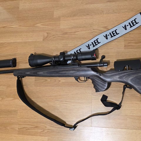Howa jaktrifle i 30.06. Houge overmolded stokk. Ferdig gjenget til demper 1/2-28 gjenger.