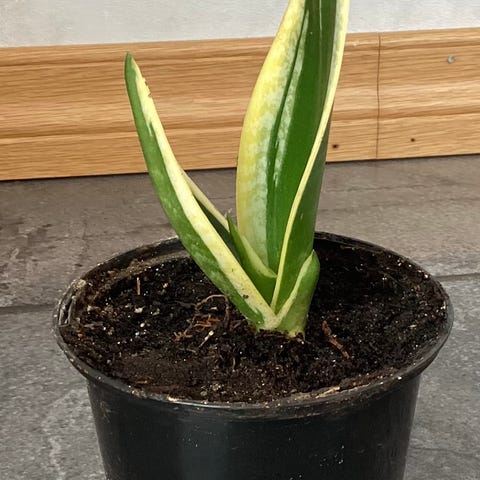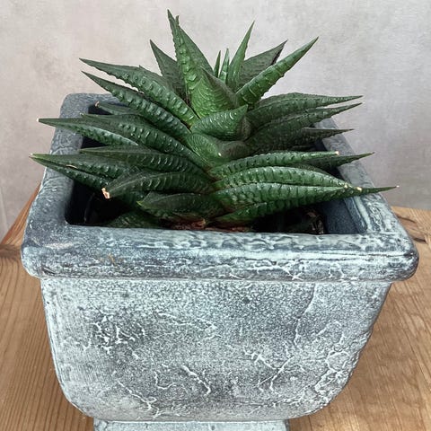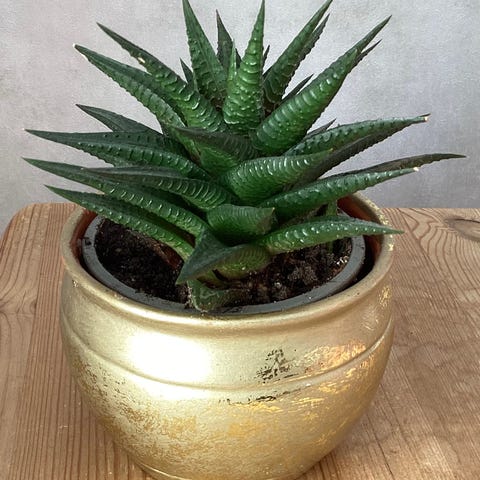 Stor, flott plante med blomster og "stiklinger i sort keramikkpotte og ampel selges kr. 200,-