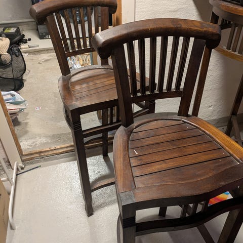 To barstoler som har stått på legendariske (nå nedlagte) Underwater Pub. Disse stolene har opplevd mye rart, og hørt mye opera.