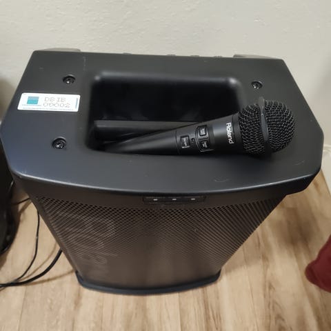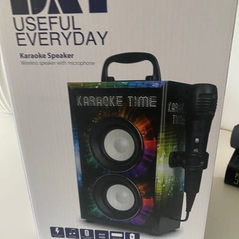 To trådløse håndholdte mikrofoner følger med, i tillegg til fjernkontroll. Systemet egner seg til tale, karaoke og enkel musikkavspilling i mindre til mellomstore rom. Høyttaleren har bærehåndtak for enkel transport.