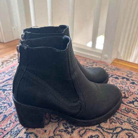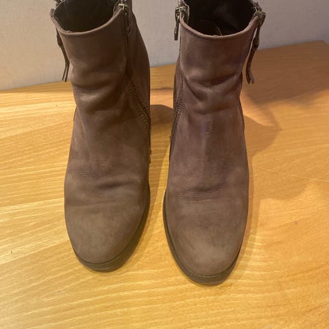 Roots støvler i størrelse 41. Ankelhøye svarte støvler med blokk hæl og grov såle. Glidelås på siden. Brukt et par ganger.