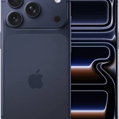 Vurderer å selge Apple iPhone 17 Pro Max smarttelefon med 256 GB lagringsplass. Modellen har et flerlinset hovedkamera på baksiden og en skjerm som dekker nesten hele fronten. Fargen fremstår som blå.