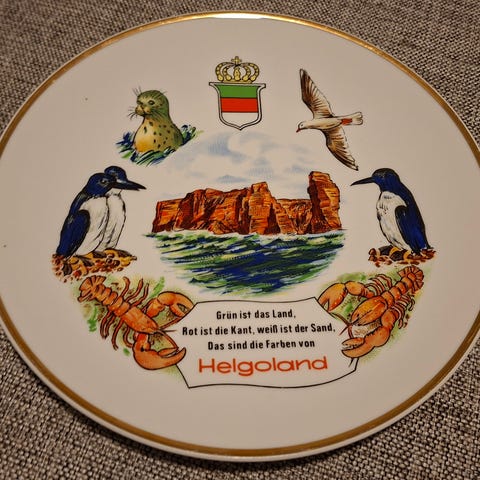 Tiedemanns Tobak askebegre i porselen med fargemotiv av fugler og fjellandskap. Rund form med innfelte sigarettspor i kanten. Dekor med teksten «Tiedemanns Tobak – Er dog den beste». Egner seg som samlerobjekt eller til bruk som klassiske porselensaskebegre.