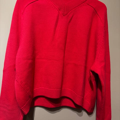 Rosa genser i ull/polyesterblanding str M passer på meg som er str M/S behagelig på.