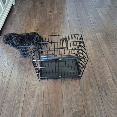 Dogman Professional hundebur i metall i svart farge. Buret har gitterkonstruksjon og uttakbar bunn i plast for enkel rengjøring. Egnet som innendørs bur eller hvileplass for hund. Kan brettes sammen for lagring og transport dersom konstruksjonen tillater det. Passer til mellomstore til større hunder. Åpning både i enden og i fronten.