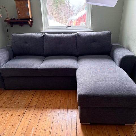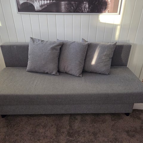Pent brukt sovesofa ca 7 mnd gammel. Liten defekt i montering der det måtte brukes en vanlig treskru istedet for medfølgende(ikke synlig eller merkbart) Må hentes hos selger