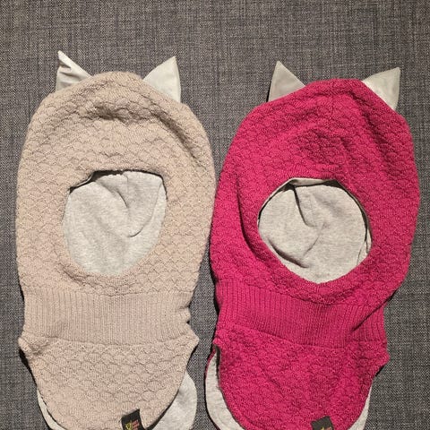 Kattnakken balaklava str.1-3 år. Brukt men mye bruk igjen. Se bilde for løs tråd bak. Ikke prøvd fikse.