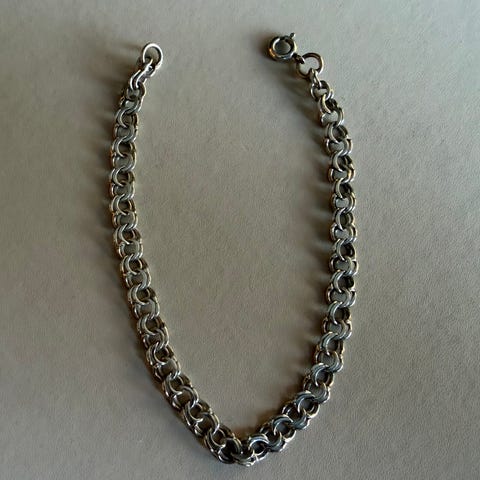 925 s Bismark armbånd selges, det er 18,3 cm langt, 4 mm bredt med 925 S stempel i den ene ringen og vekt 4,2 gram.. Selges for kr 400,- Eventuellporto tilkommer.