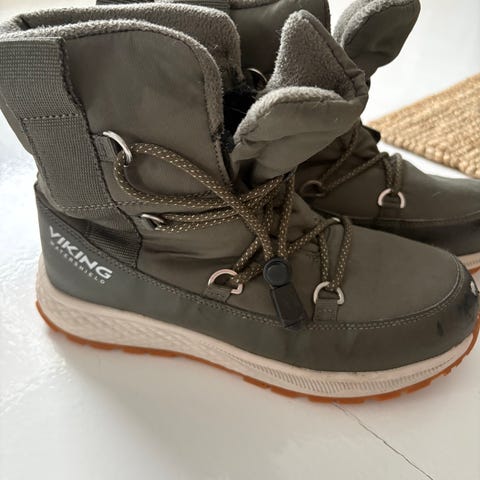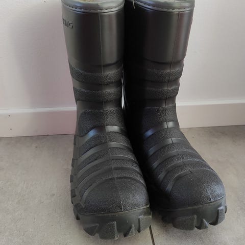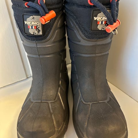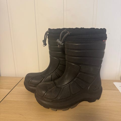 Viking vinterstøvler for barn, unisex. Støvlene er svarte med grov yttersåle som gir godt grep. Overdelen er i robust, vannavstøtende materiale med tekstilkant øverst og stramming med snor for bedre passform rundt leggen. Fôret innside gir ekstra varme på kalde dager. Egnet som vinter- og snøstøvler til allsidig bruk ute i barnehage, skole og fritid.