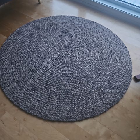 Vi har katt som har dradd ut noen av trådene i teppet, ellers ser tappert bra ut
