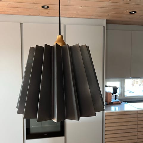 🔶Har 2 taklamper fra Lene Bjerre. Koksgrå metall med messingfarge inni. Den ene har en liten skrape.Diameter 29 cm og høyde 21 cm. Pris 450 kr for den med skrape, 500 kr for den andre. Se enkeltbilder. Sender.🔶Oslo lampe, svart stativ med beige skjerm. Den er litt gulnet inni skjermen, men av lite betydning. Pære medfølger på kjøpet. 3500 kr. Sender ikke. 🔶Oransje Hay vegglampe. Diameter 36 cm. Denne har et stativ som gjør at den kommer litt ut fra veggen. 1600 kr. Sender.
