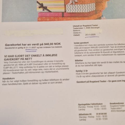 Gavekortet ble mottatt i gave, men blir dessverre ikke brukt. Gyldig til november 2026.