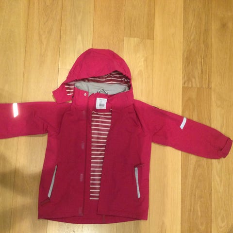 Polarn O. Pyret skall og fleece vindtett og vannavstøtende 2 jakker i Gore-Tex for jente i størrelse 140, 9-10 år. Jakken er rosa og har hette. Jakken har refleksdetaljer på ermer og bak for bedre synlighet. Innvendig har jakken fôr, og jakkene kan tas fra hverandre eller kneppes sammen. Bruker du den kneppet sammen er det en varm vinterjakke. Hver for seg er det perfekt som vår/høst-jakke.