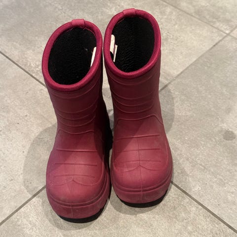 Viking gummistøvler til jente i størrelse 35. Støvlene er i en mørk lillafarge med grovmønstret såle for godt grep. Innsiden har fôr for økt komfort. Egner seg til bruk i regnvær og vått underlag. Varme og gode. Ubrukt d de ble for små.