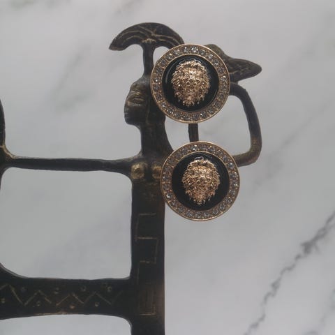 Store statement øredobber med strass og løve