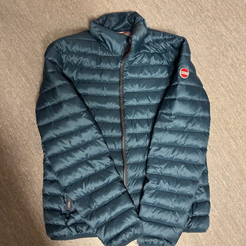 Colmar vinterjakke i dun til herre i størrelse 50. Jakken er grønn utvendig med kontrastfarget innside. Modellen har høy krage med mykt fôr, gjennomgående glidelås i front og flere lommer, blant annet brystlomme og innerlomme. Vattert/dunfylt konstruksjon gir god isolasjon for bruk i kaldt vær. Passer som ytterjakke i vinterhalvåret til hverdags og fritid.