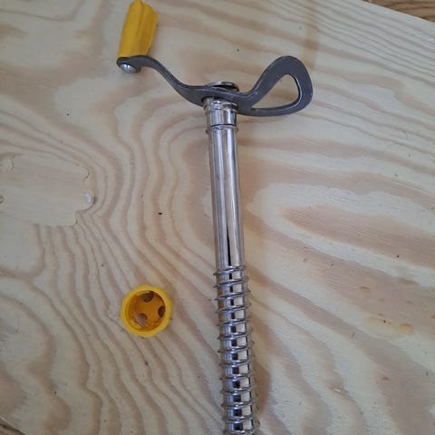 Isskruer i metall med gjenger og beskyttelseshetter. Leveres i et mykt oppbevaringsetui i tekstil
