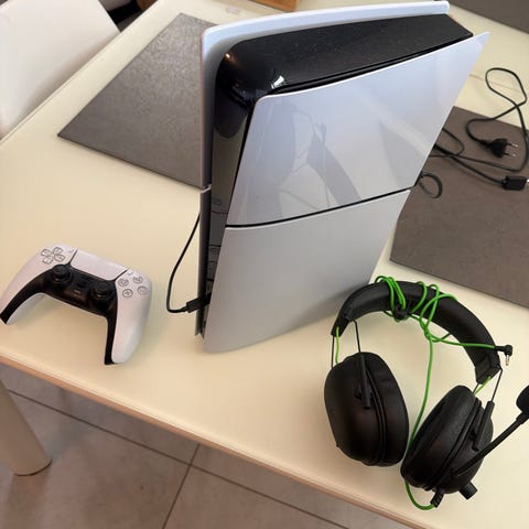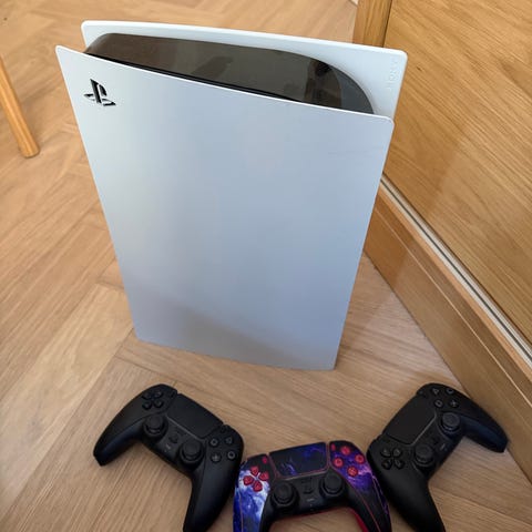 Sony PlayStation 5 selges med 2 kontroller (1 brukt bare et par ganger). Følger også med skjerm og Logitech Astro A50 headset (nypris 3 000,-). Selges på grunn av lite brukt.