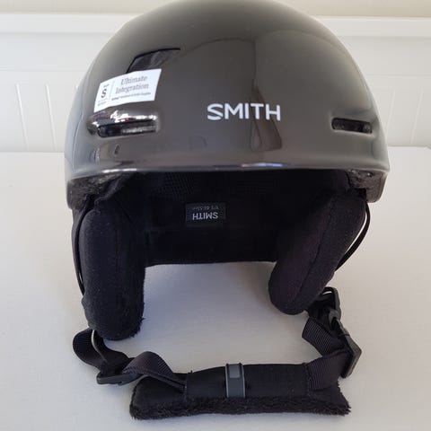 Smith Youth skihjelm i størrelse S, omkrets 48–53 cm. Hjelmen er blå og beregnet for barn/ungdom. Den har justerbar hakestropp med polstring og myke, polstrede øreputer for bedre komfort. Flere ventilasjonsåpninger i skallet gir lufting under bruk. Egnet til alpint og andre vintersportsaktiviteter.