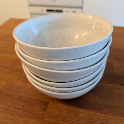 Fem skåler i ulik størrelse og stil gis bort.