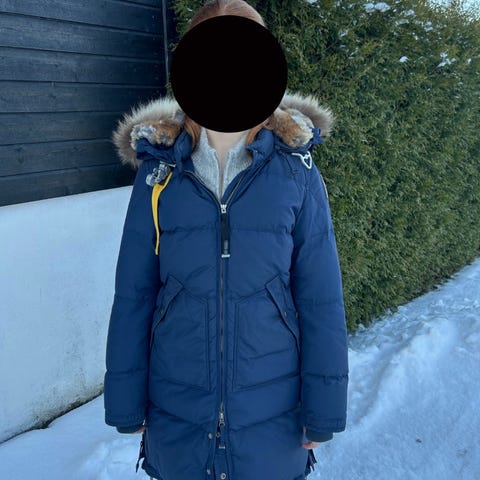 Parajumpers dun vinterjakke for dame i størrelse S. Jakken er svart og fylt med dun. Den har hette med pelskant, høy krage og karakteristiske Parajumpers-detaljer som gul stropp og logo på ermet. Modellen er en lang, quiltet vinterjakke med glidelås foran og knappelukking. Egnet som ytterjakke i kaldt vær.