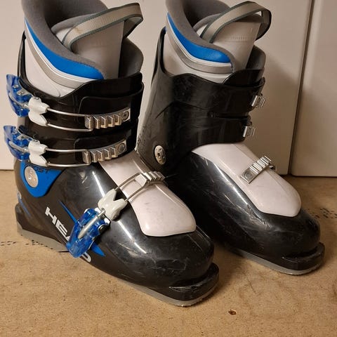 Head Team Rapid alpinstøvler for barn i svart og blå farge. Støvlene har to justerbare spenner i plast/metall og polstret innersko for bedre passform og komfort. Egnet til bruk i alpinbakke for barn som står på ski på nybegynner- til viderekommet nivå.