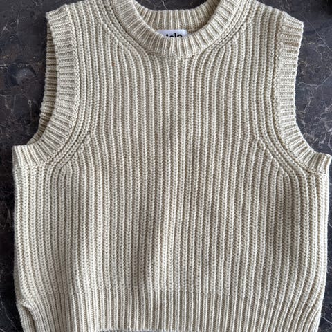 To kjempe fine (og varme) vester. Hjemmestrikket i mohairgarn. Tilsvarer str 128-134.