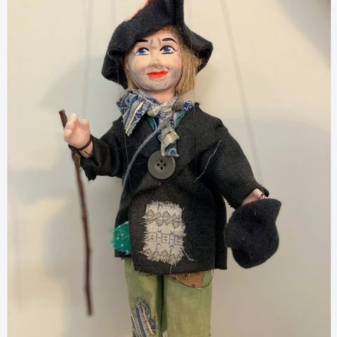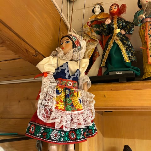 De tre marionettedukkene er kjøpt i et dukkemakerverksted i Praha, som lager håndlagde dukker.