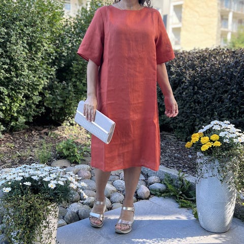 Skreddersydd sommerkjole lin oransje dame str L
