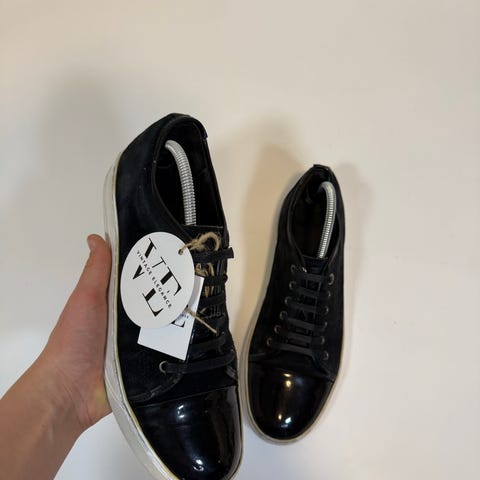 Jeg selger noe kjempe fine svarte Lanvin🇮🇹 toe cap sko👞 i svart◾️, de er i størrelse size 5, som tilsvarer 39 cirka, men lanvin er kjent for å være store i størrelsen📏 så tilsvarer en 40. Skoene selges for en ekstremt billig pris! Skoene har et lite merke på den høyre toe cap, synes nesten ikke. Ta kontakt hvis du er inntresert.