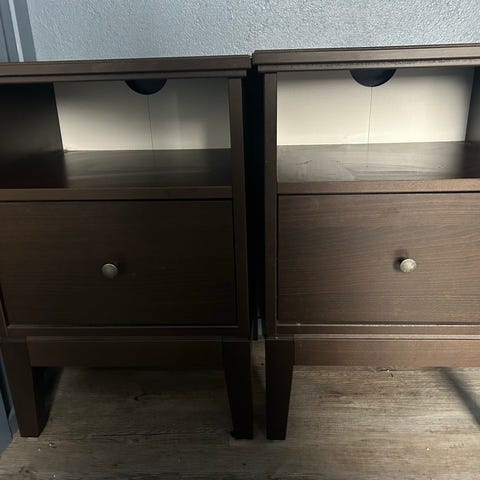 2 stk natt bord fra IKEA selges. Døren er hengslet en høyre og en venstre. Selges samlet. Er bare bilde av den ene.