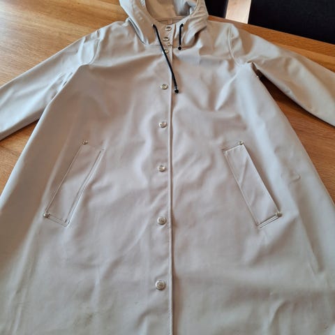 Regnjakke fra stutterheim i beige. Den oppleves som en xs-s.