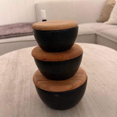 Selger disse to krukkene med lokk! Kan brukes til mye forskjellig! Tror dette er keramikk eller porselen(?)